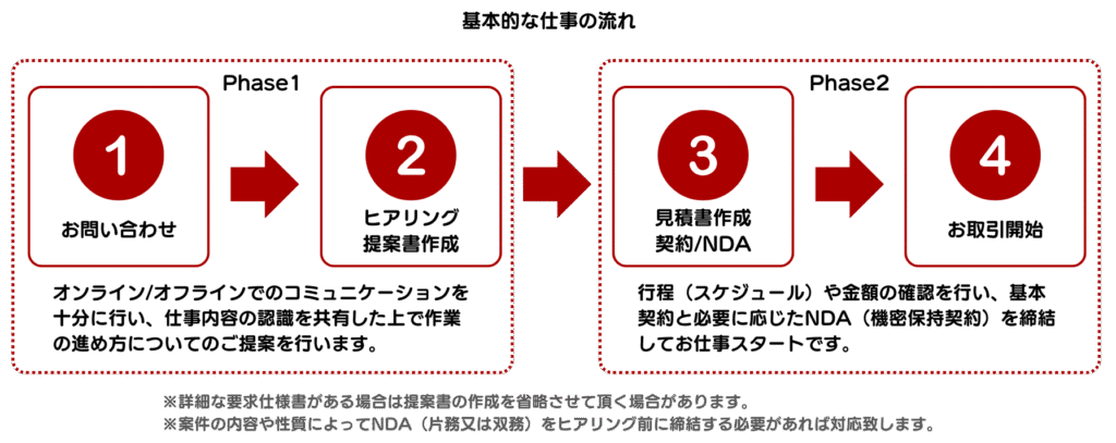 お客様からのお問い合わせを頂いてからお仕事が始まるまでの流れを以下にまとめました。